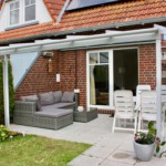 Auf unserer überdachten, windgeschützten Terrasse mit elektrischer Markise und Loungemöbeln, einem Gartentisch und Gartenstühlen erwartet Sie ein unverbauter Blick über das große angrenzende Feld zur historischen Kirche. Der gesamte nach Süden ausgerichtete Garten ist mit Hecken und einem zusätzlichen Zaun versehen. Entspanntes Zurücklehnen ist nicht nur auf unserer Lounge möglich, sondern auch auch auf einer unserer Gartenliegen.