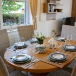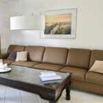 Das großzügige lichtdurchflutete Wohn- und Esszimmer mit Blick in den großen Garten bietet Platz für bis zu sechs Personen und einem Baby. Ein großer Esstisch lädt nach einem Tag am Strand zu einem gemütlichen Essen mit dem besonderen Geschirr von Villeroy und Boch ein. Das große Ledersofa bietet Platz für entspannte Fernseh- oder Kuschelabende.